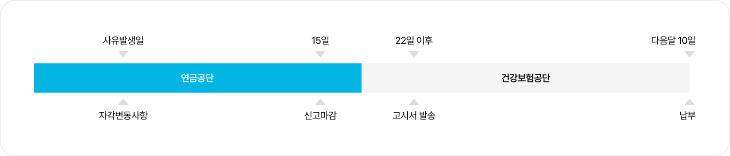 - 매월 자격변동사항을 사유 발생일이 속하는 달의 다음달 15일 이내에 신고해야 함